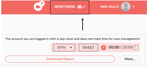 In monitoring mode, ensure the toggle is selected above -