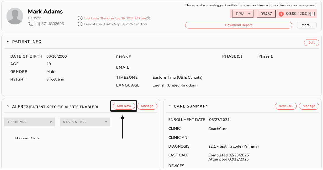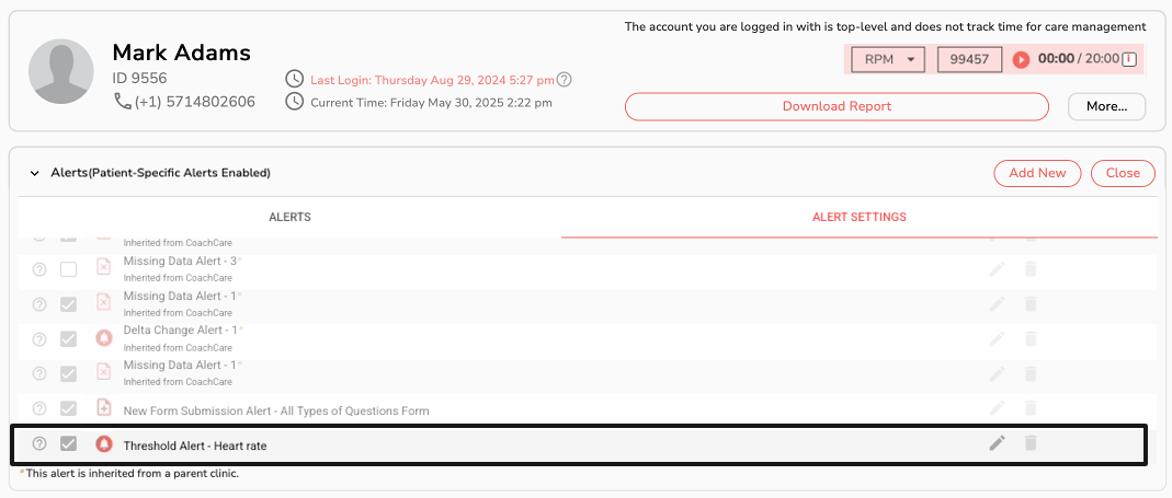 Note: Per-Patient Alerts need to be enabled for your clinic by the CoachCare Tech Team. Please reach out to your Provider or Support to use this feature.