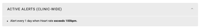 Note: All Active Alerts related to this patient and alert type will be referenced (Organized by Clinic-Wide and Per-Patient). You will see the Clinic-Wide Alert we mentioned before when ANY Patient exceeds 100bpm.