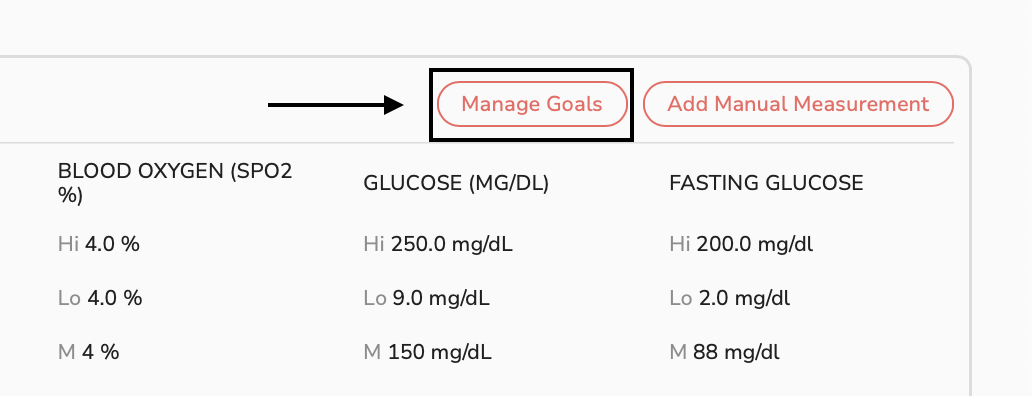 - For Glucose, we've left it blank since we do not need a goal for it. In the case that not all measurements are being used by the patient.