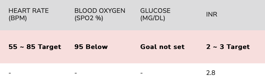 - For Heart Rate, we've set the goal to be between 55 and 85 BPM. If the patient submits a reading outside of 55 and 85 BPM then it will indicate they are out of goal.